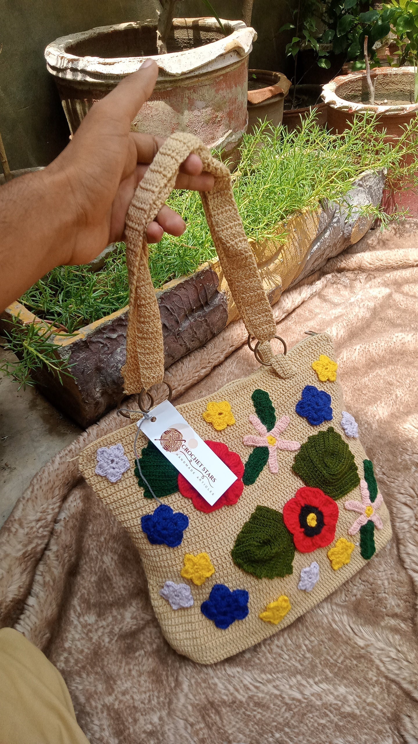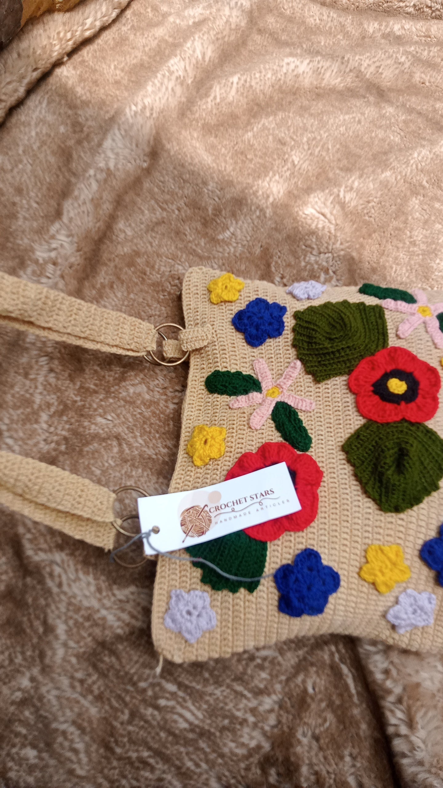 Beautiful Crochet Bag In Skin color and flowers