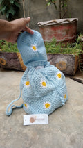 This expertly crafted blue crochet backpack combines artisanal design with everyday functionality. Made from durable yarn, it offers a lightweight yet sturdy structure perfect for carrying essentials. Its unique unibag style features spacious compartments and comfortable straps, blending traditional crochet artistry with modern practicality. Ideal for those seeking a stylish, eco-friendly alternative to conventional backpacks.