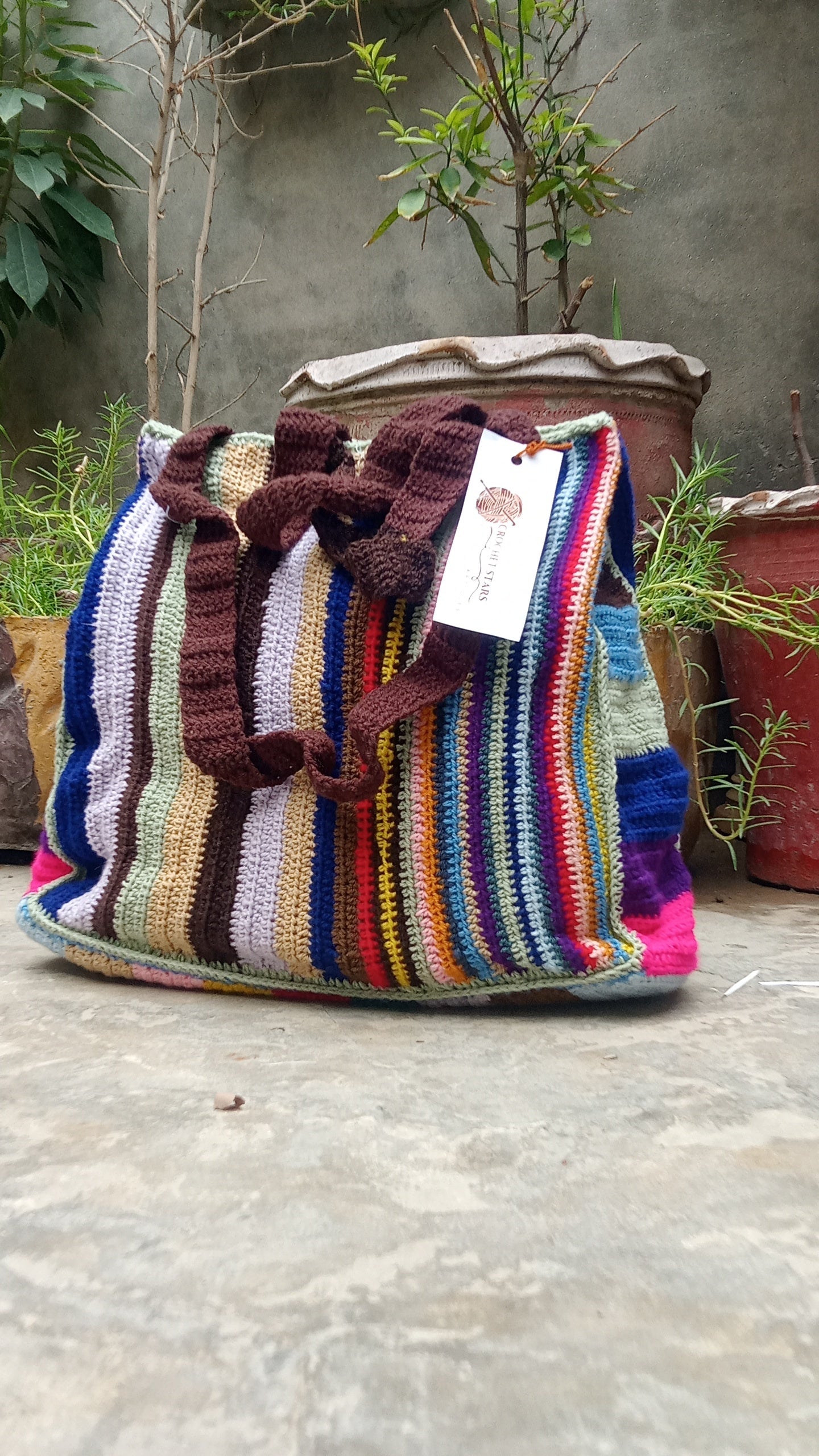This Crochet Multi Color Bag showcases expert craftsmanship with its vibrant, handwoven design. Made from durable yarns, it offers both style and practicality, perfect for daily use or special occasions. Its spacious interior accommodates essentials comfortably, while the colorful pattern adds a unique, artisanal touch to any outfit. Ideal for those who appreciate quality and distinctive handmade accessories.